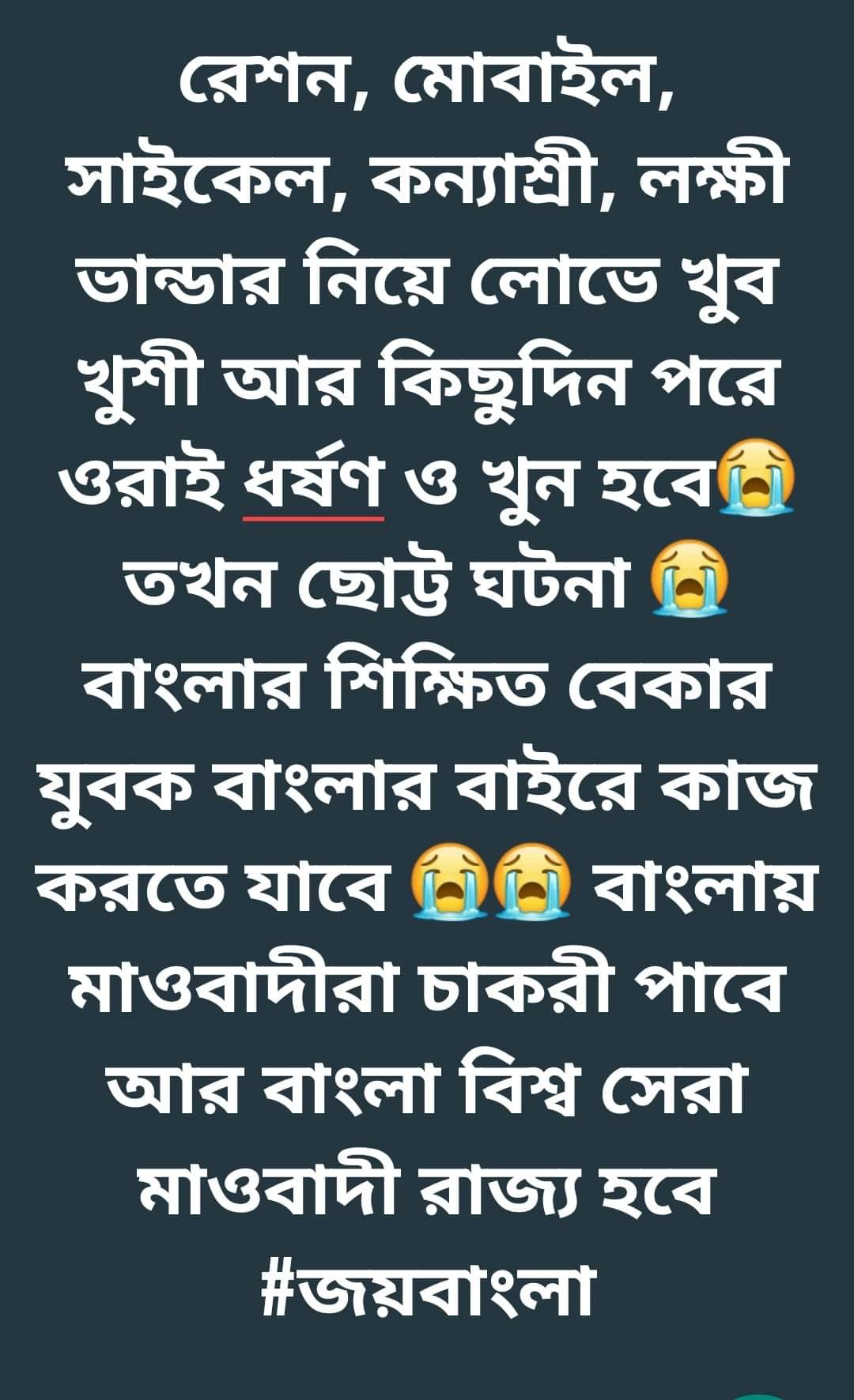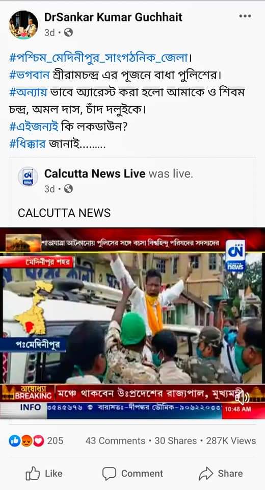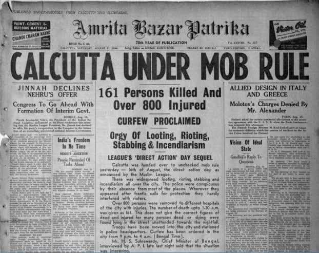 16th August 1946 Direct action Day75 বছর আগে আজকের দিনে কলকাতায় কি হয়েছিল সেটা পুরো বিশ্ব জানে। The Great Calcutta Killing নিয়ে না হয় আপনারা একটু পড়াশোনা করে নিন।আজকের দিনে আমাদের পশ্চিমবঙ্গের মাননীয়া মুখ্যমন্ত্রী “খেলা হবে” দিবস পালন করছেন। বছরের এতগুলো দিন থাকা সত্বেও আজকের দিনটা কেন ? এক বিশেষ সম্প্রদায়কে খুশি করার জন্য? মাননীয়া জানেন না যে আজকের দিনে হাজার হাজার হিন্দুদের হত্যা করা হয়েছিল, আহত ছিলেন বেশ কয়েক হাজার, ঘর ছাড়া হয়ে পড়েছিলেন লক্ষাধিক হিন্দু। আজকের দিনটি মাননীয়া বেছে নিলেন “খেলা হবে” দিবস হিসাবে।শুনছি নাকি একটা প্রদর্শনী ফুটবল ম্যাচ হবে।”বাংলা বনাম ভারত”ঠিক কী বোঝাতে চাইছে আমাদের রাজ্যের মুখ্যমন্ত্রী ??DirectActionDay #GreatCalcuttaKillings