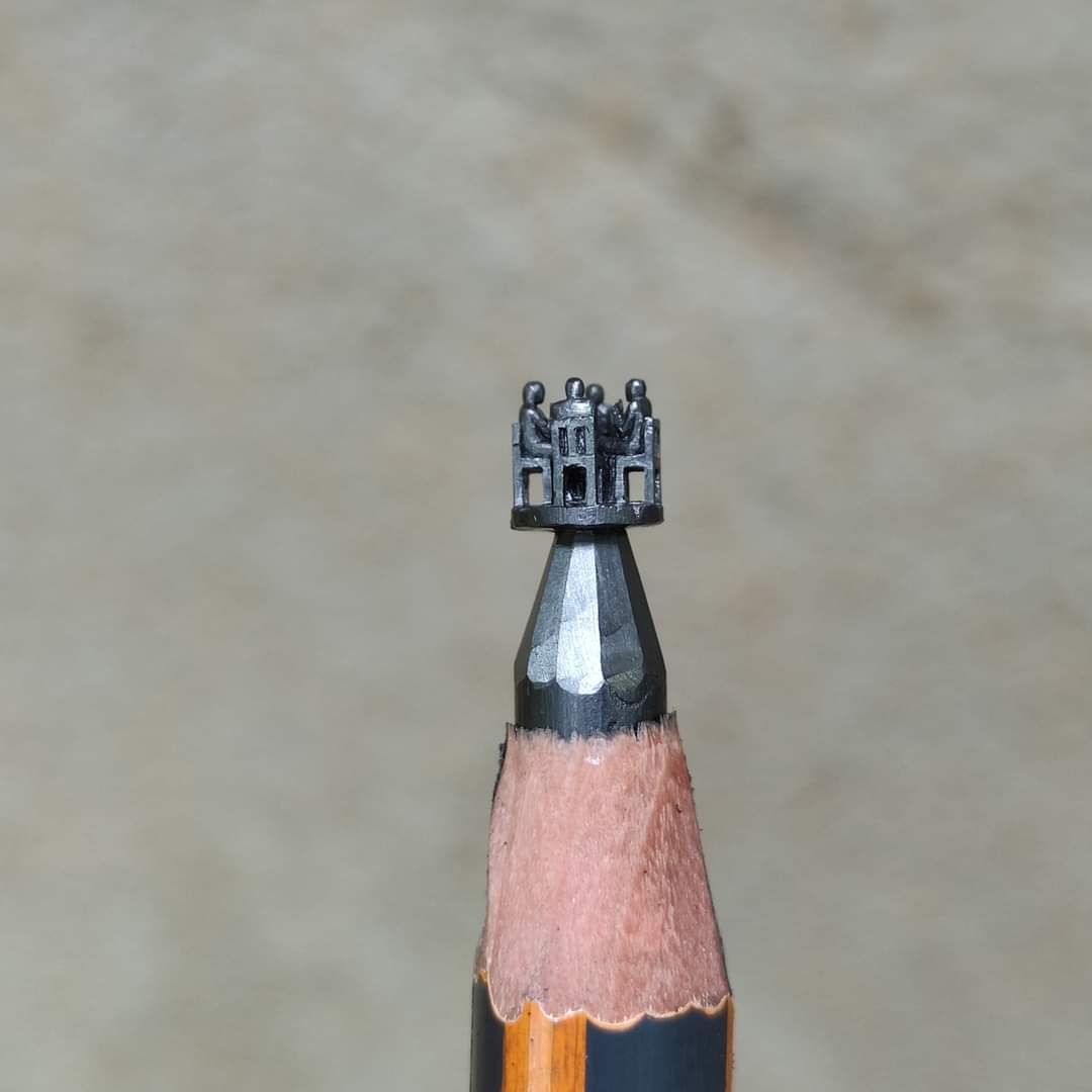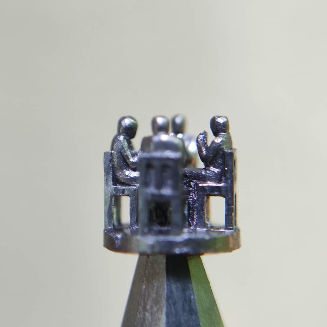 ‘4 card players sitting on chairs’ Another hard level completed on a 5mm jumbo pencil. I was thinking to curve 2 people sitting on chairs. Finally I was able to success completing 4 people on chairs. that’s how I realized impossible is nothing(5mm jumbo pencil, craft knife, hand made tool)#microcarving #SriLanka #MICROPENCIL #miniaturesculpture #srilankanartist #sculpture #pencil #pencilcarving #microsculpture #miniatures #pencilcarvin #microartist #microartis #kohinoorhardtmuth #Kohinoor #venuspencil #staedtlerpencils #microartist #camlinpencil #carvingart