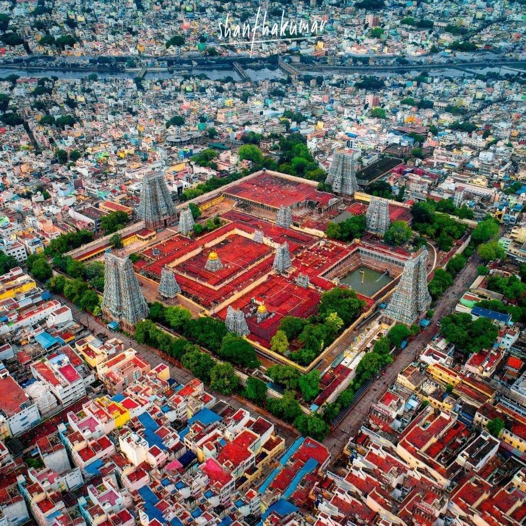 Meenakshi Amman Templeat Madurai, Tamil Nadu, BHARAT (India) 🚩dedicated to Parvati, known as Meenakshi, and her consort, Shiva, here named Sundareswarar. The temple forms the heart and lifeline of the 2,500-year-old city of Madurai and is a significant symbol for the Tamil people, mentioned since antiquity in Tamil literature though the present structure was built between 1623 and 1655 CE. It houses 14 gopurams (gateway towers), ranging from 45–50m in height. The tallest is the southern tower, 51.9 meters (170 ft) high, and two golden sculptured vimanas, the shrines over the garbhagrihas (sanctums) of the main deities. The temple attracts 15,000 visitors a day, around 25,000 on Fridays, and receives an annual revenue of sixty million INR. There are an estimated 33,000 sculptures in the temple. It was on the list of top 30 nominees for the “New Seven Wonders of the World”. The annual 10-day Meenakshi Tirukalyanam festival, celebrated during April and May, attracts 1 million visitors.#madurai #tamilnadu #india_travel_tourism #temple #meenakshiammantemple #tamilnadutourism #incredibleindia #india #templesofindia #worldwidehindutemples #sculpture #aerialphotography #dronephotography🌟🌟🌟Support us through buying from our link on Amazon (without paying the extra) 🤗🔻🔻www.amazon.in/shop/worldwidehindutemples