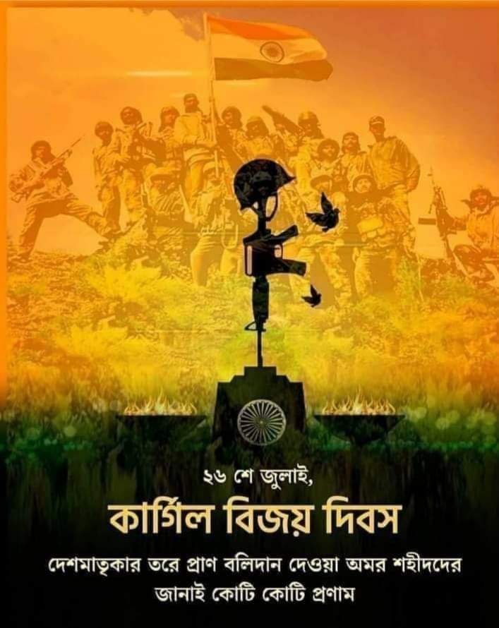 আজ ২৬ শে জুলাই #কার্গিল_বিজয়_দিবস দেশমাতৃকার তরে প্রাণ বলিদানকারী অমর শহীদদের জানাই কোটি কোটি প্রণাম ও শ্রদ্ধাঞ্জলি।।#ভারত_মাতা_কী_জয় Posted bymoon DJ studioJuly 26, 2021Posted inUncategorized Share this: Click to share on X (Opens in new window) X Click to share on Facebook (Opens in new window) Facebook Click to share on Telegram (Opens in new window) Telegram Click to share on WhatsApp (Opens in new window) WhatsApp Click to email a link to a friend (Opens in new window) Email Like Loading... Related Published by moon DJ studio https://wbsfda.org/ View more posts