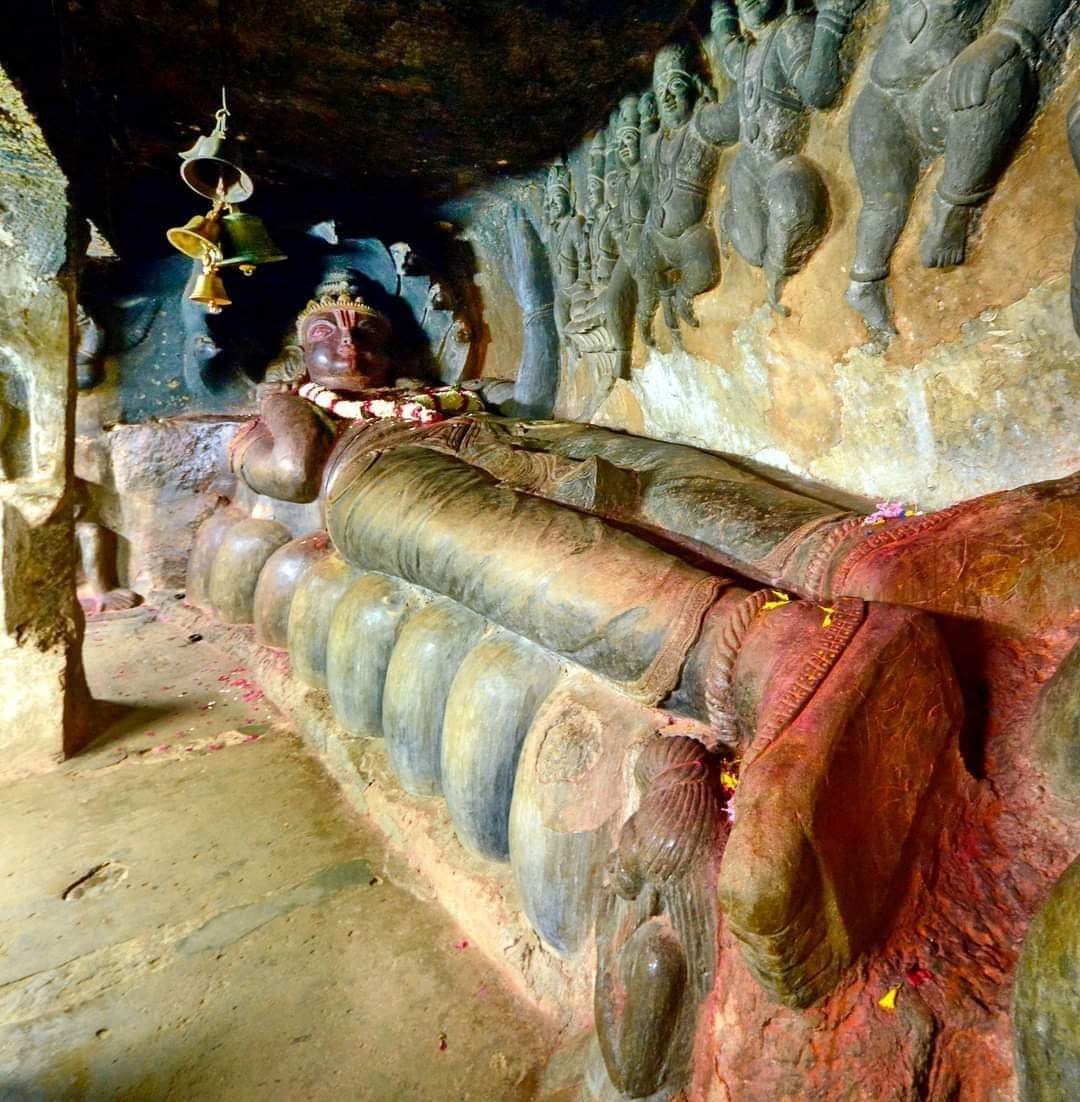 Bhagwan Vishnu Ji sleeping in a very calm manner in the Undavalli Caves, Andhra Pradesh. This is a 1500+ years old reclining Murti of Vishnu Ji, carved out of a single block of granite.📸: Rajiv Srivastava Photography on FB. #positivevibes#ancient#incredibleindia🇮🇳