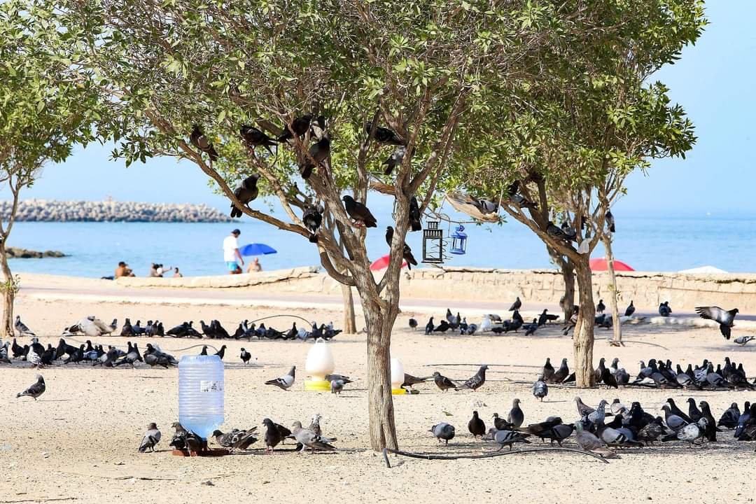 Too hot to handle! ☀️😎☀️Pigeons take cover under the shade of trees on the seafront of Kuwait City, as the country recorded scorching summer temperatures of 46 degrees Celsius. Photo by YASSER AL-ZAYYAT via VCG #️⃣Birds#️⃣Kuwait#️⃣weather