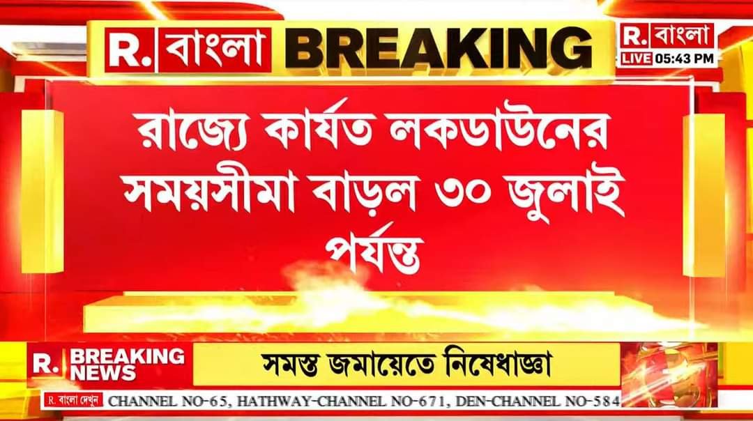 BREAKING I রাজ্যে কার্যত লকডাউনের সময়সীমা বাড়ল ৩০ জুলাই পর্যন্ত। ১৬ জুলাই থেকে ৫০ শতাংশ যাত্রী নিয়ে সোম-শুক্র চলবে মেট্রো। আপাতত চালু হচ্ছে না লোকাল ট্রেন, বন্ধ স্কুল-কলেজদেখছেন ‘হচ্ছেটা কী?’, ক্লিক করুন এই লিঙ্কে- https://youtu.be/ZbqFXifTAUw