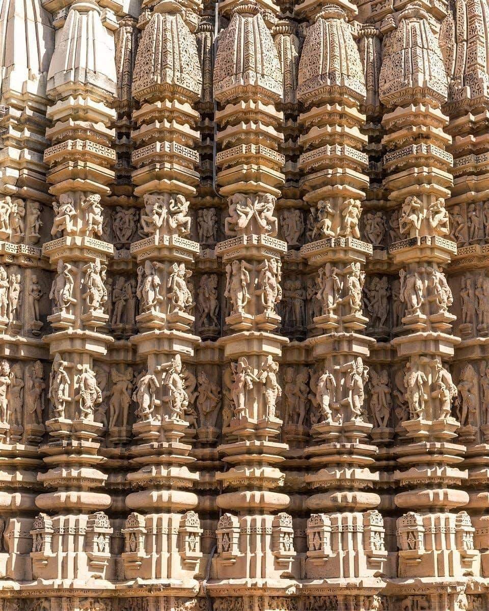 Rare pic of the sculpture in one frame 😇Place – western group of monuments, Khajuraho, MP, BHARAT (India) 🚩PC Khajuraho Tourism #khajuraho #khajurahosculptures #history #historicalplace #carvingart #worldwidehindutemples #sanatandharma #indianarchitecture #incredibleindia #india