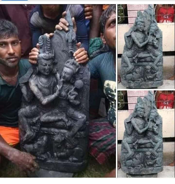 This extraordinary beautiful statue of Hargauri (11 July 2021) has been recovered during the excavation of an old pond at Nardas village in Nardas union of Bagmara upazila of Rajshahi, Bangladesh The statue is two feet high, one foot wide and weighs 60 kg of Touchstone. Har Har Mahadev 🙏