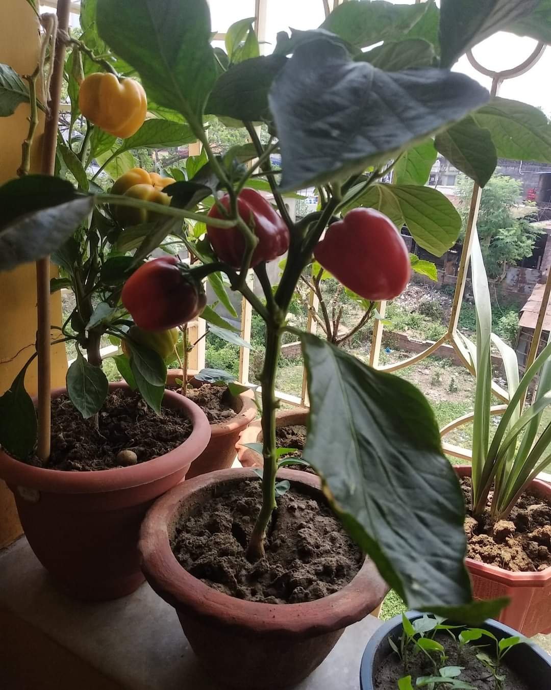 বীজ থেকে চারা করেছি, বাজারে খুব দাম, তাই ভেবেছিলাম বাড়িতে চাষ করবো লাল আর হলুদ ক্যাপসিকাম এর🤭🤭 অনেক চারা করেছিলাম, অনেকে চেয়েছিল তাদের দিয়েছি❤️
