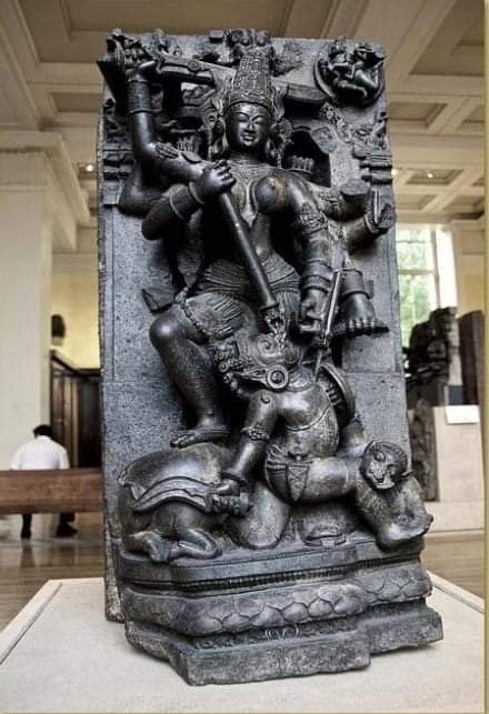 Exquisite Stone sculpture of Maa Durga Mahishasuramardini, About 13th CenturyMahishasura was a buffalo demon, was known for his deception & his evil ways by shape shifting into different forms. He was ultimately killed by Maa Durga -At The British Museum, #London