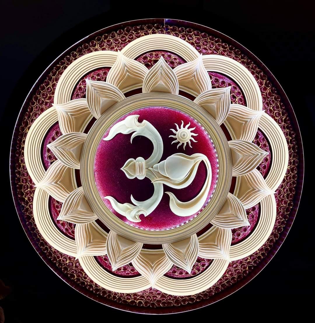 Good evening my dear lovely friends. I have designed this paper sculpture of OM symbol by joining the trishul , sankham, third eye and surrounded by mandala 9 designs with 7 layers for positive energy. OM NAMAH SHIVAYAH 🙏pranay jana 🚩🚩🚩🇮🇳