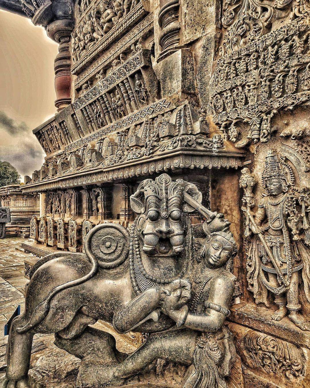 An 8th century Wonder !!🤩The magnificent Mallikarjuna Temple, Karnataka is part of the stunning Pattadakal group of monuments. Another Dravidian -style temple that is extremely photogenic is the Sri Bhramaramba Mallikarjuna Temple. Often considered a twin of the Virupaksha Temple, this shrine makes for an impressive sight against the backdrop of a clear blue sky.Here you’ll find intricately-carved pillars depicting stories from Ramayana and Mahabharata, the two famous Hindu epics. Mallikarjuna Temple also houses a couple of famous stone reliefs, those of Samudra Manthan (churning of the ocean) and Mahishasura Mardini (the Goddess who annihilated a powerful demon).Built in Dravidian style, the Temple has 3 mukhamandapas on 3 sides with a partially collapsed stone nandi mandapa.The mukhamandapas and the pillars of the hall have wonderful carvings of Gods and scenes from Ramayana, Mahabharata and Panchatantra. The ceiling of the Temple is also adorned with beautiful figures.#incredibleindia #ancientindia #AncientArt #sanatandharma #worldwidehindutemples🌟🌟🌟Support – 👇👇www.amazon.in/shop/worldwidehindutemples